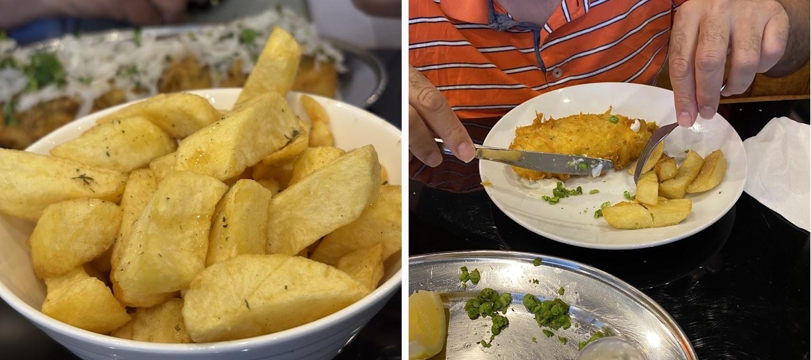 The must-try dishes include the Ultimate Seafood Boil, traditional Fish & Chips, and Fish Pakora. Don't miss the Masala Fish cooked in homemade sauce and the range of delicious curries.